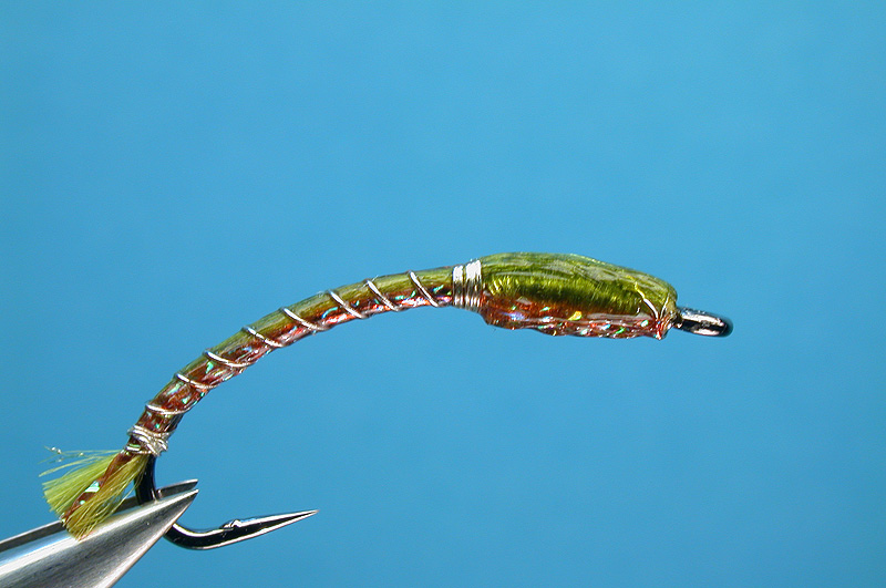 | Abdomen: | Danville's Rayon Floss - Green and Micro Flash Fiery Brown - coated with Hard as Nails with Nylon |
