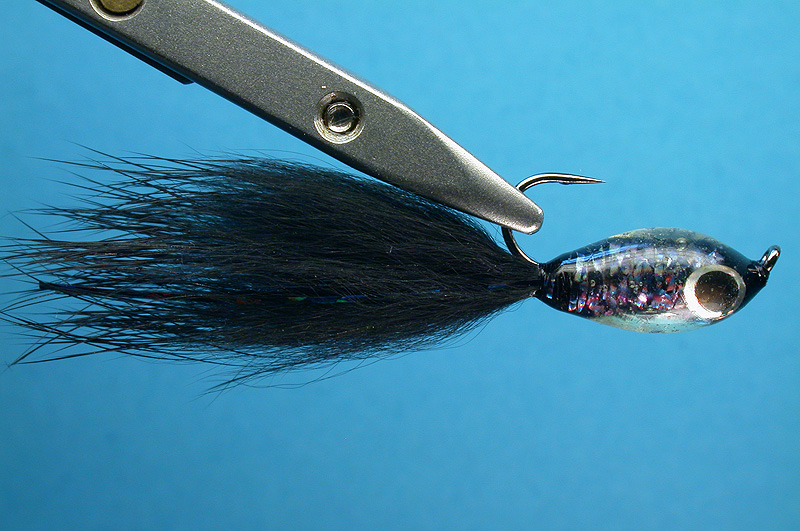 | Tail: | Black rabbit fur and Holographic Tinsel - Fine black |