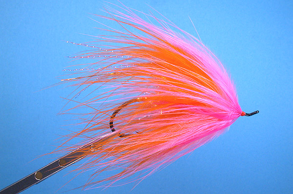 Blood Quill Marabou tightly palmered in the following sequence; 3-4 plumes Hot Orange followed by 1-2 plumes Hot Pink |
