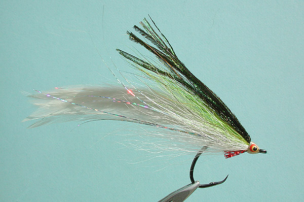 | Wing: | chartreuse and black bucktail (top), white bucktail (botton) |