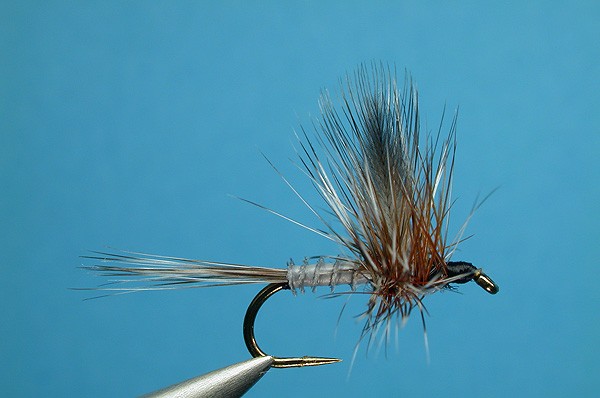 | Tail: | Brown and Grizzly spade hackle |