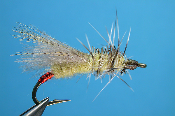 | Hackle: | Light dun, wrapped thorax style |