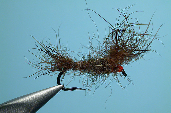 | Wing: | Hair from the pad of a snowshoe rabbit's foot, dyed chocolate |