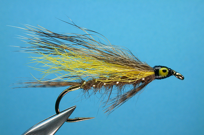 | Wing: | Yellow calftail topped with woodchuck, for a more barred, fishy look. (Original calls for tan, brown and yellow bucktail, topped with black bear.) |