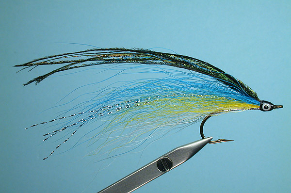 | Wing: | Top to bottom, Dark blue, yellow, and white bucktail. Topped with 4-6 strands of peacock herl. I also like to "modernize" the original by adding a few strands of silver or pearl (or both) of crystal flash |