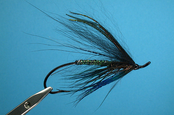 Note: A "dark-day" fly that looks very much alive with all the benefits of peacock and the spey style.