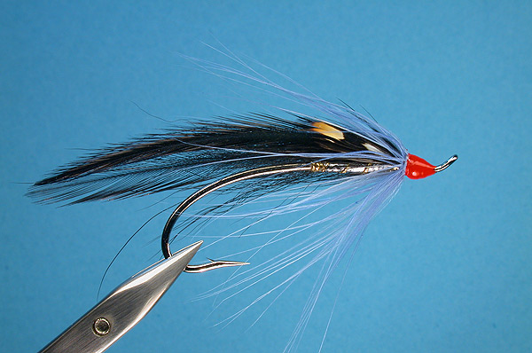 | Wing: | Small black Artic Fox (under wing), 2 black hen hackle |
