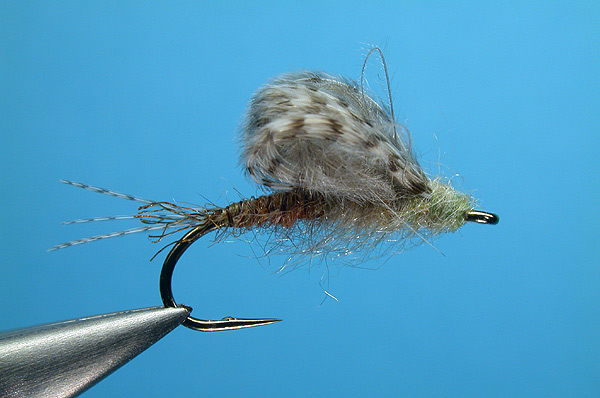 | Anterior abdomen/thorax: | Dubbing blend matching color of emerging dun's underside |
