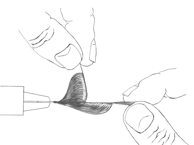thread. Repeat for the other wing on the other side of the fly. When