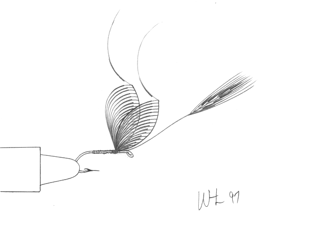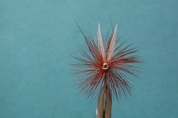 - Now for the rest of the dressing (start with the tail), and those wings are a great post for parachute style hackling.