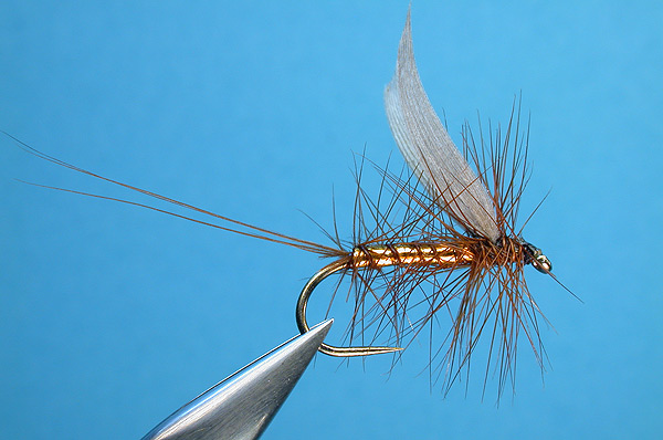| Hackle: | Brown cock hackle |