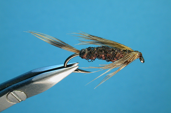 | Tail: | Grizzly hen hackle barbs |