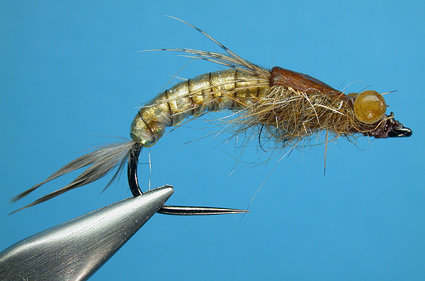 | Abdomen: | olive thread covered by clear vinyl and painted using brown Edding 2200 pen |
