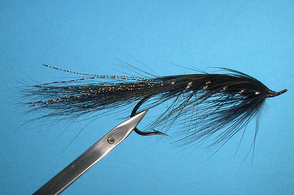 Notes: Intended Use: Wet fly for winter-run steelhead Since its inception in January 1984, I have altered the original fly's dressing considerably. As the Black GP evolved over the years some of the first things to go were the golden pheasant red breast feather in the tail and the tippet eyes. I sometimes add a few strands of black, red, pearl, silver, or chartreuse Krystal Flash in the tail to add colour and, at times, I do like to dress the Black GP on red Gamakatsu hooks. The Krystal Flash and red hooks add sparkle and colour to the fly. However, just plain black without the colour works just as well. I realized early on that the golden pheasant red breast in the tail and tippet eyes were superficial components and that the critical components that attracted a response from the fish were the Black GP’s long supple squirrel tail, the flowing body hackle and its attractive dark silhouette. As the fly evolved, Bob Taylor would look at the most current version and comment on the lack of golden pheasant in the fly. He is one of the few people who knew how important a role golden pheasant played in Drury’s GP and that fly’s name. With the golden pheasant breast feather and golden pheasant tippet feather eyes gone from my fly and with my use or wood duck or hen hackle feathers for the wing, Bob questioned my GP name and hinted that I should either re-institute golden pheasant into the fly or consider a different name. In more recent years after one supplier started dying golden pheasant capes black I used the golden pheasant black dyed breast feathers for the wing but do not layer them in as did Colonel Drury. I dress my black version now with two black dyed golden pheasant breast feathers tied in at the hook eye. Even then when Bob commented on my wayward GP I would respond with “but there is golden pheasant in the wing” and it is still a GP. During a recent spring of 2004 coastal cutthroat fishing trip with Taylor, the subject of a Black GP name change rose to the surface again. We were hoping to hit the main salmon fry emergence and planned on fishing silver-bodied fly patterns. We did have some days when the cutts and Dolly Varden were slashing the surface after fry but, when the surface was quiet, surface fished fry patterns provoked few responses. I can’t say how many trips I have been on where I was told that you need to have a certain fly to be successful but by trip’s end the anglers in the party I was with have discarded their recommended pattern for the Black GP. The spring cutthroat trip turned out the same. Some of the guys left their supply of Black GPs at home or had too large a fly to fish on our trout rods. Their facial expressions revealed their despair as they witnessed the cutts and Dolly Varden attacking my Black GP. I being a generous spirit took pity on the poor souls and dished out an allocation of Black GPs--regular and marabou versions--dressed on six 6 and 8 hooks to Bob Taylor and Charlie Brumwell. And catch fish they did. It was after this 2004 spring cutthroat trip that the name change came up again and because the Black GP has become indispensable to me, I asked Bob if he thought the name The Indispensable was appropriate. He replied that this fly is such a part of you that you should call it Lingren’s Indispensable. Regular, marabou, and low-water versions of my Indespendible as well a bar-bell eyed version dressed on hooks ranging from 2/0 to 10 line the foam ridges in my fly box and like the advertisement for the American Express card, I never leave home on a fishing trip without a supply of Lingren’s Indispensable. That fly that has become an indispensable part of many a fishing trip. |