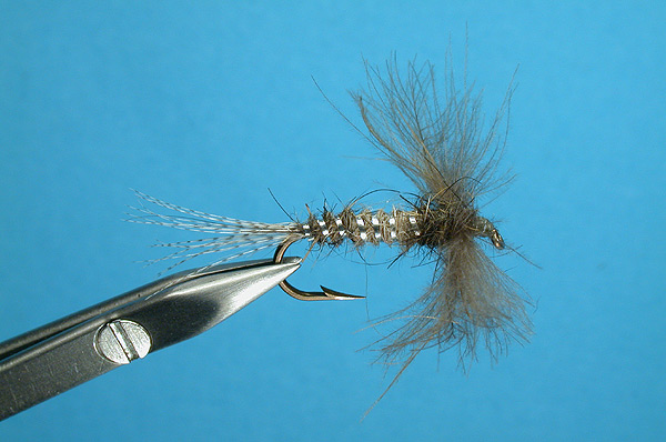 | Abdomen: | Natural hare and fox fur dubbing, half and half |