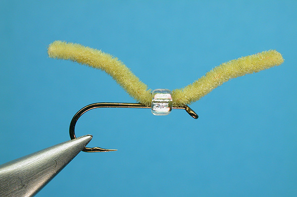 | Tail/Body: | tan micro chenille (Use Zap-a-Gap to hold the bead and chenille in place) |