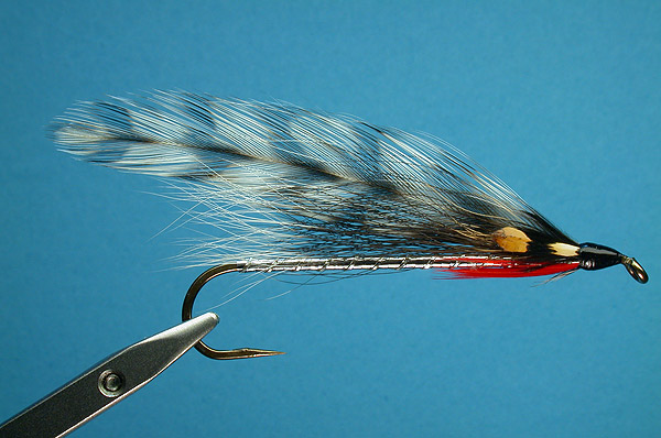 | Wing: | Gray squirrel tail under grizzly hackle |