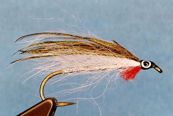 A hairwing version of my all time favorite marabou streamer. Maybe I'm too critical, but I have a hard time finding really good marabou for streamer flies. It's either too "stringy" and lacking motion, or the tips of the barbs seem overly blunt and broken. I have switched to arctic fox for this fly and haven't regretted the change in one bit. Caution must be taken in preparing the wing, as it is very easy to overdress this fly. The arctic fox doesn't slim down in water like some other materials, so what it looks like when dry is very similar to how it looks when wet. I've added a couple strands of pearl flashabou in the wing to add a twinkling flash. I like it.
