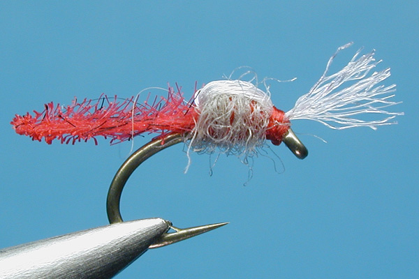 | Abdomen: | Ultra chenille or New Dub, or similar fine chenille material, cut to length and singed on the tip |