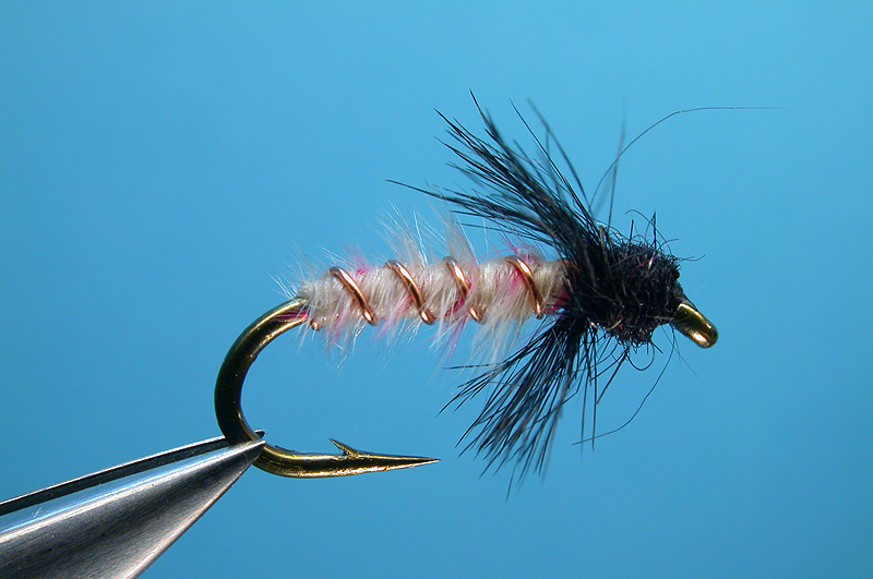 | Abdomen: | 3 strands white marabou, 1 strand pink marabou |