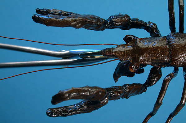 | Claws/pinchers: | #15 monofilament covered in silicone caulking |