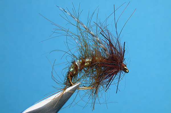 thorax/head. Pick out rubber wigglies and trim.