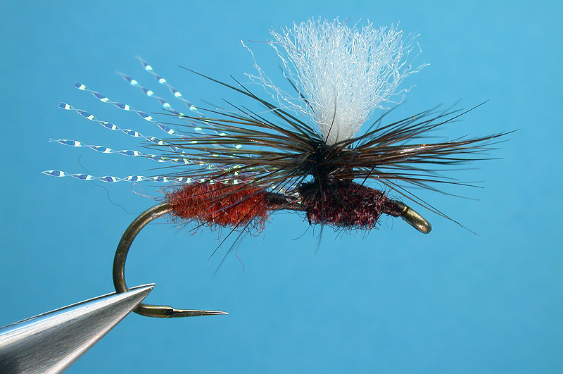 | Hackle: | Dark brown dyed saddle hackle |