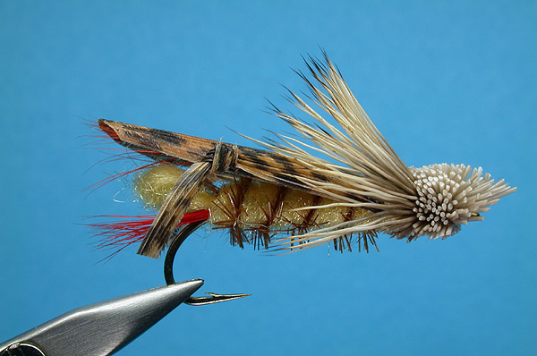 | Underwing: | Red squirrel tail or calf tail, (also tie a yellow under wing) |