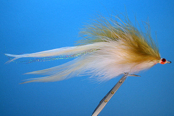 | Tail: | Back is golden olive marabou belly is white marabou |