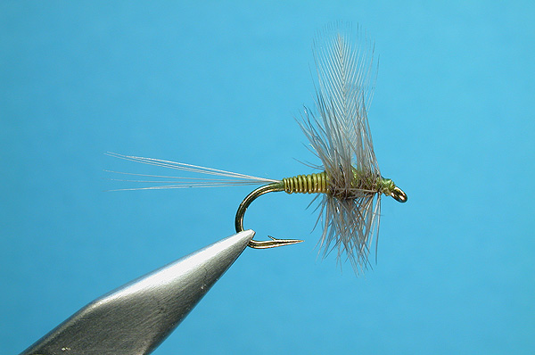 | Abdomen: | Yellow “PMD” stripped hackle quill |