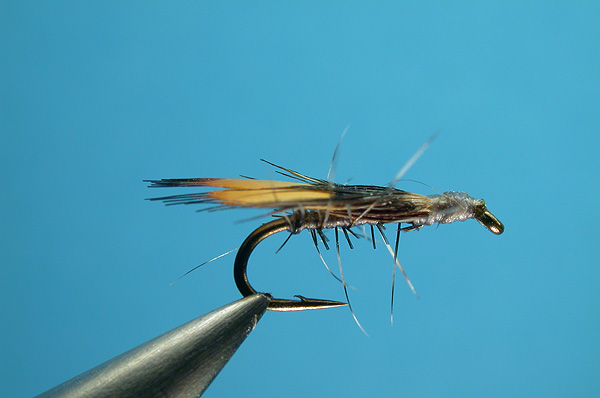 | Hackle: | Any color, ties in by the butt at bend and palmer to just behind eye. Trim hackle top and bottom. |