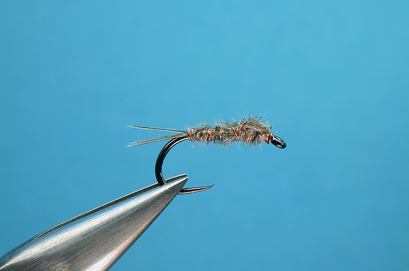 | Tail/body/thorax/wingcase: | Fibers from the grey goose wing covert or similar |