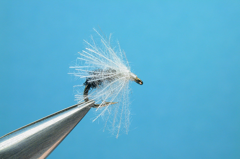| Hackle: | white CDC fibers in a dubbing loop |