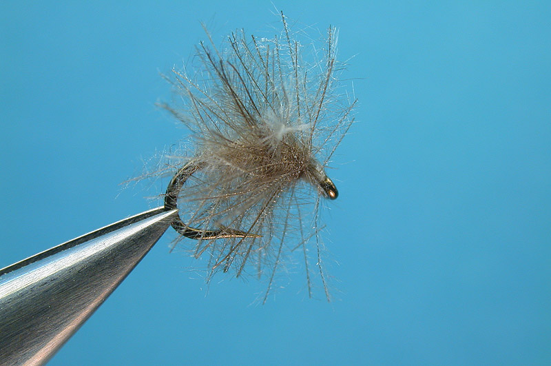 | Hackle: | dun CDC fibers in a dubbing loop |