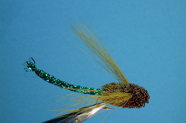 Notes: The dominant colour of Patagonian dragon flies is green, varying from blue-green to olive. They hatch mainly in January –the middle of summer, here. Trout gorge on the nymphs as they migrate towards he banks as they prepare to hatch, for this is when they’re at their most vulnerable. They tend to congregate thickly in shallow bays with beds of emergent reeds, where they use the reed stems to climb slowly out of he water prior to emergence. Adults also tend to inhabit the same reedy bays, specially while oviposting. Consequently, this is where the fly fisher will find the most action on both on the surface and on the bottom. |