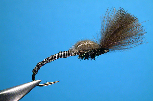 | Thorax: | Three strands of peacock herl |