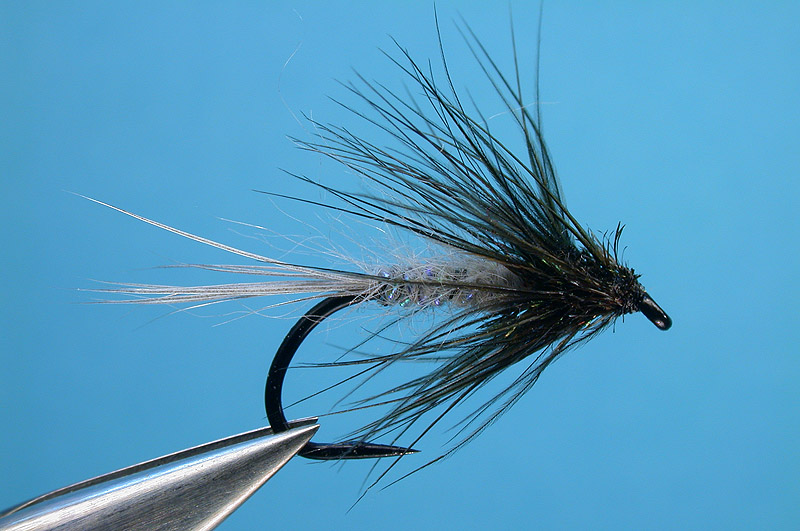 | Thorax: | Peacock herl and hen hackle, black - twisted |