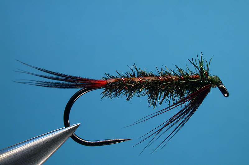 | Abdomen: | Peacock herl, single strand taken from just below the 'eye' for a slender body |