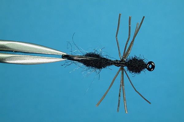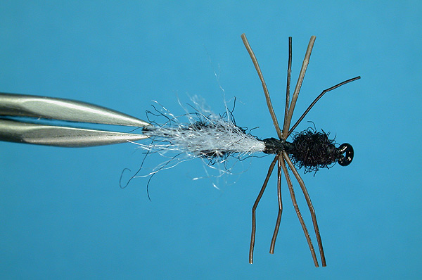 | Legs: | Four strands of moose body hair, tied in across, trimmed to length and 'crinkled' |