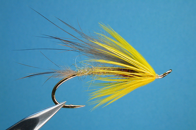 | Hackle: | Hen, bright yellow, webby |