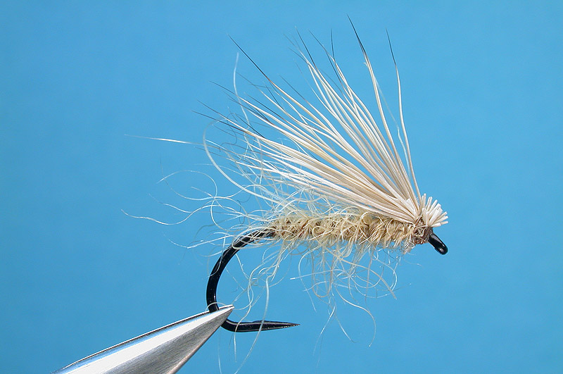 Snowshoe hare foot underfur, cream, inserted into split thread