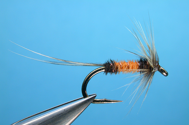Note: The body is built up in two stages. A few barbs form the rear black and the orange. A few more barbs to do the front black.