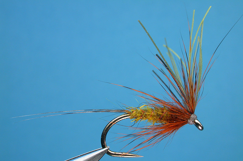 | Hackle: | Pine squirrel guard hair, dyed cinnamon |
