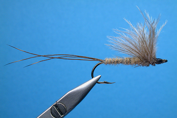 Note: A continuation of what to do with a bag of Emu feathers. Another one feather, one fly pattern. Tail is Moose, Body is an Emu feather tied in by the tip and wrapped forward, then trimmed, leaving a "wing" similar to a Comparadun. It works when the early season dark mayflies are on the water. |