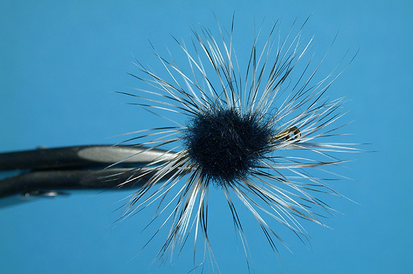| Wing post: | Antron, Glo Bug yarn, or most any similar dubbing. Firmly tie a clump of dubbing to the top center of the hook with strong thread. Tie the clump in at the center so that both ends/sides can be pulled up. Tightly post the body with three of four wraps of thread. |