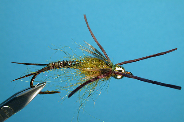 | Legs: | Brown flexifloss or superfloss at the head (or female ringneck pheasant fibers) |