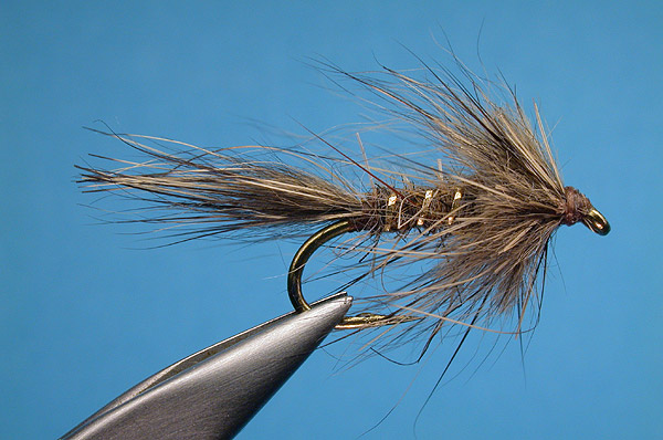 | Abdomen: | Dark hare's ear dubbing with guard hairs |