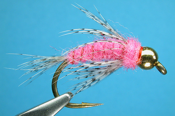 | Abdomen: | fine pink dubbing mixed with chopped red floss |