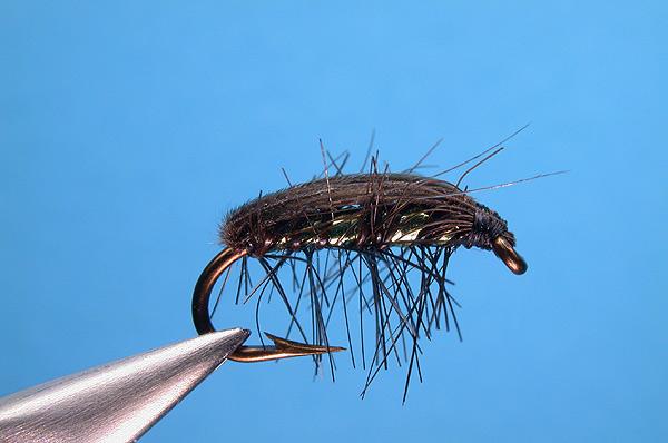 Note: Hackle can be clipped underneath for a low rider version or palmer with an undersize hackle and do not trim for a “bushier” beetle. |