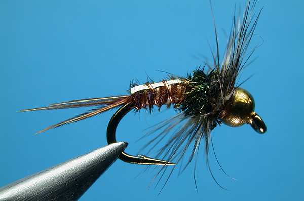 If I could use only one pattern to fish the Missouri River, it would be a Beadhead Pheasant Tail Nymph. I have added two variations to the basic pattern, a flashback and a soft hackle. |